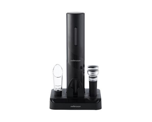 - Includes: battery operated electric wine opener, foil cutter, wp-015 wine pourer, sp-016 wine stopper*2, storage base