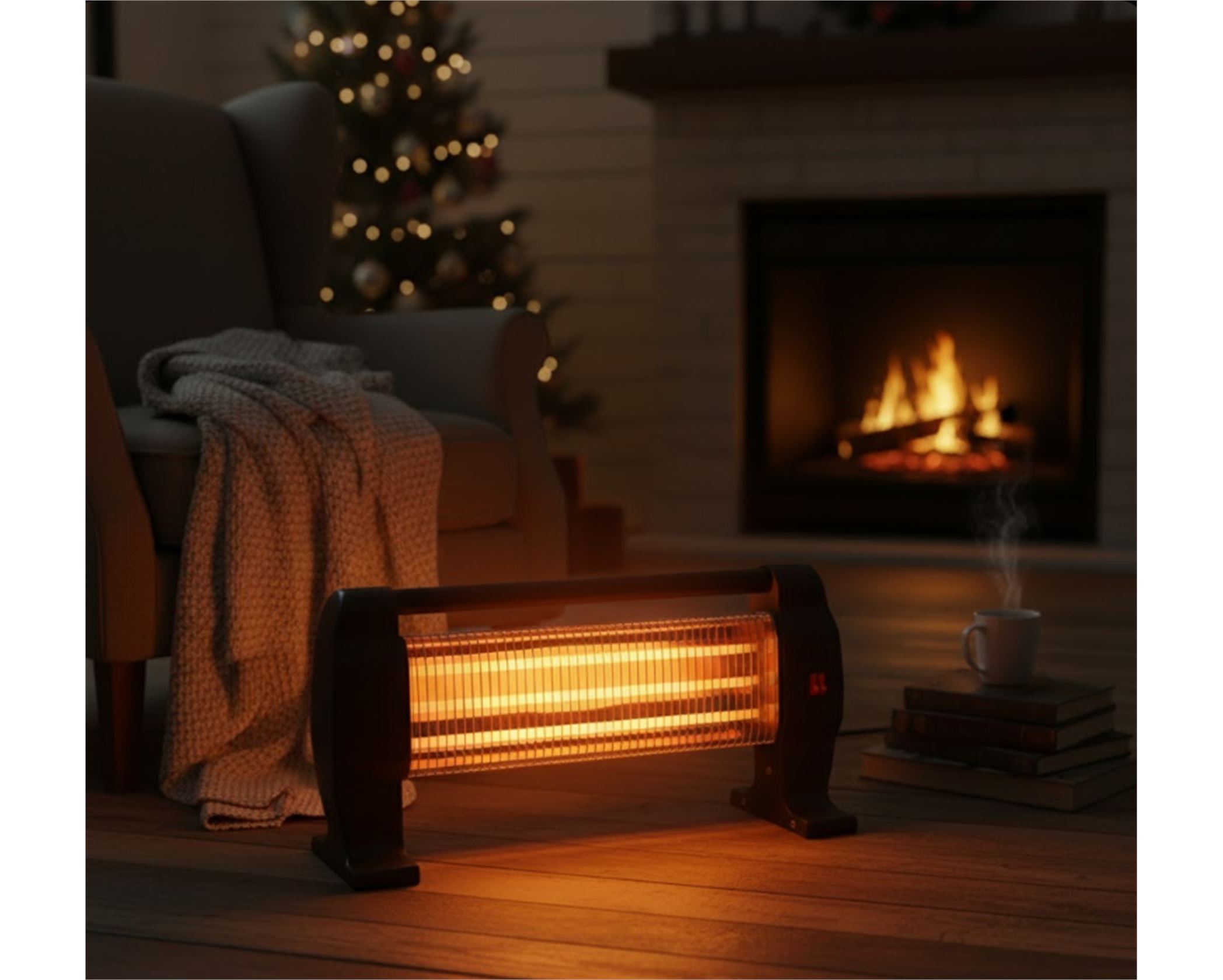 - 3 quartz heating bars for quick and even warmth