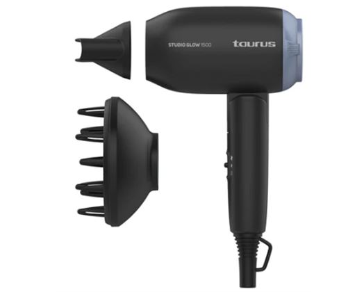 Taurus brings you the Studio Glow 1500 Hairdryer. With a powerful motor in a compact futuristic black and purple compact body. The Hairdryer has 2 temperature settings and speed settings. |It has a removable air filter for easy cleaning and maintenance. |