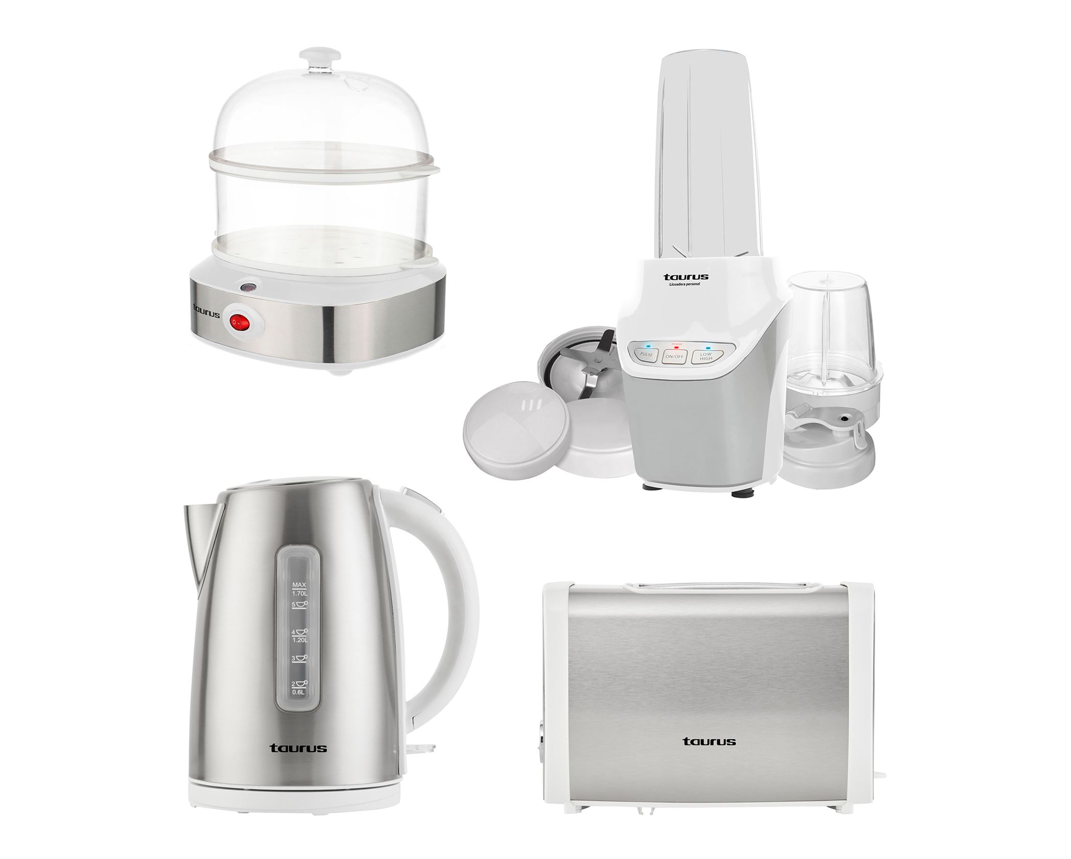 Introducing the Ultimate Kitchen Companion Set – a 4-piece collection featuring a sleek kettle, precise toaster, versatile egg boiler, and powerful personal blender. Elevate your mornings with rapid boiling, perfect toasting, and easy egg preparation. For nutritious blends, the personal blender awaits. Upgrade your kitchen with this harmonious blend of style and functionality.